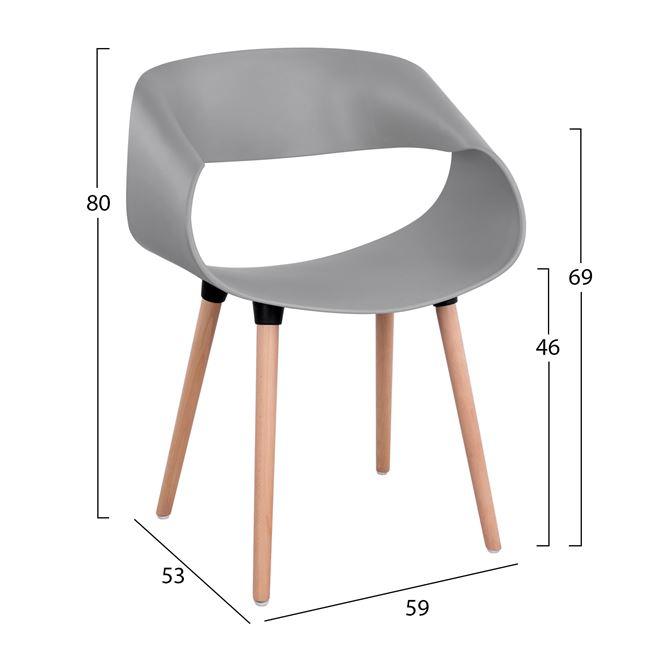 Πολυθρόνα από ματ πολυπροπυλένιο σε γκρι απόχρωση. Mε πόδια από μασίφ ξύλο οξιάς και κάθισμα από ματ πολυπροπυλένιο, η καρέκλα βρίσκεται στην κορυφή του σημερινού interior design και φυσικά στην κορυφή των δικών σας προτιμήσεων. Είναι η απόλυτη must have επιλογή. Διαστάσεις: 59x53x80Υ εκ. Ύψος καθίσματος: 46 εκ. Ύψος μπράτσων: 69 εκ. Διαστάσεις καθίσματος: 50x44 εκ. Η πολυθρόνα διατίθεται σε πακέτο.