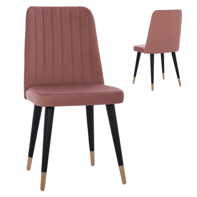 Καρέκλα Marisol από υψηλής ποιότητας βελούδινο ύφασμα σε απόχρωση σάπιου μήλου, με ξύλινα μαύρα πόδια που φέρουν χρυσές λεπτομέρειες στο τελείωμα τους. Αν ψάχνετε μία καρέκλα που θα δώσει έναν αέρα πολυτέλειας στον επαγγελματικό σας χώρο, τότε η Marisol είναι ιδανική για εσάς. Λιτή, ποιοτική και κομψή σίγουρα θα εντυπωσιάσει. Τεχνικά χαρακτηριστικά: Επένδυση καθίσματος από υψηλής ποιότητας suede ύφασμα που ενισχύει την αίσθηση της κομψότητα. Σταθερός σκελετός από ξύλο με αντοχή στο βάρος, στη φθορά και στο χρόνο. Το εσωτερικό μέρος της πλάτης φέρει ραφές που προσθέτουν έναν ιδιαίτερο χαρακτήρα στην καρέκλα. Οι καταλήξεις των ποδιών διαθέτουν καλύμματα για την προστασία του πατώματος από ανεπιθύμητες φθορές. Ιδανική για επαγγελματικούς χώρους. Γενικές Διαστάσεις: 47x57x91Υ εκ. Διαστάσεις καθίσματος: 47x45 εκ. Διάσταση πλάτης: 40x45 εκ. Ύψος καθίσματος: 48 εκ.