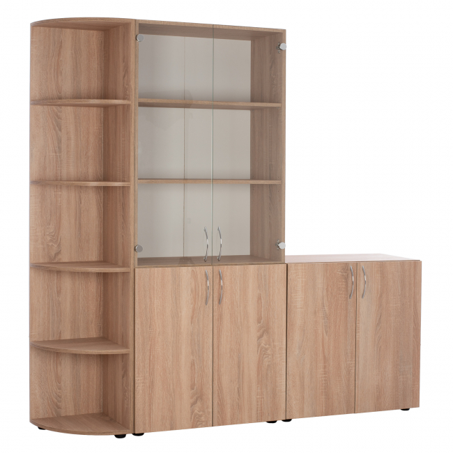 Σετ βιβλιοθήκη σε απόχρωση sonama 176x37x182 εκ. Με τη σειρά γραφείων και βιβλιοθηκών Devon, σου δίνεται η δυνατότητα να διαμορφώσεις τον εργασιακό σου χώρο, ή το γραφείο στο σπίτι, ανάλογα με τις ανάγκες του χώρου σου, συνδυάζοντας και ενώνοντας τις ποικίλες διαστάσεις τους και τις επεκτάσεις, δημιουργώντας ακόμη και ένα μεγάλο, άνετο, γωνιακό γραφείο ή και μια μεγαλύτερη και από 4φυλλη γωνιακή βιβλιοθήκη, αξιοποιώντας στο μέγιστο τις επιφάνειες του δωματίου σου. Βιβλιοθήκη γραφείου με 2 γυάλινες και 2 ξύλινες πόρτες, με κλασικό αλλά παράλληλα και μοντέρνο σχεδιασμό λόγω των τζαμιών, που θα συμπληρώσει και θα ανανεώσει αισθητά, το γραφείο σας. Διαθέτει αρκετούς χώρους αποθήκευσης,τρεις χώρους αποθήκευσης στο πάνω μέρος και δύο χώρους αποθήκευσης στο κάτω ντουλάπι. Επίσης ένα ντουλάπι, που διαθέτει 2 ραφια για χώρους αποθήκευσης γραφειακού υλικού. Συνδυάζεται με μια βιβλιοθήκη γωνία, σε απόχρωση sonama με εργονομικό σχεδιασμό, που θα συμπληρώσει και θα ανανεώσει αισθητά, το γραφείο σας. Μπορεί να χρησιμοποιηθεί ως συμπλήρωμα,δίπλα σε μια μεγαλύτερη βιβλιοθήκη της ίδιας σειράς, για να καλύψει τις ανάγκες του χώρου σας. Διαθέτει 5 χώρους αποθήκευσης, που θα σας βοηθήσουν να οργανώσετε και να τακτοποιήσετε εύκολα το χώρο σας. Κατασκευασμένη από μελαμίνη υψηλής ποιότητας. Γενικές Διαστάσεις: 176x37x182 εκ. Γενικές Διαστάσεις Βιβλιοθήκης: 70x37x182 εκ. Διαστάσεις ραφιών: 66x33x32,5 εκ. 66x33x33,5 εκ. 66x33x35 εκ. Διαστάσεις ραφιών ντουλαπιού: 66x33x33,5 εκ. 66x33x35 εκ. Γενικές Διαστάσεις Ραφιέρας: 35x35x182 εκ. Διαστάσεις ραφιών: 33x33x34 εκ. (x4) 33x33x33,5 εκ. Γενικές Διαστάσεις Ντουλαπιού: 70x37x75 εκ. Διαστάσεις ραφιών: 66x33,5x33 εκ. 66x33,5x35 εκ. Το προϊόν διατίθεται ασυναρμολόγητο σε πακέτο. Ευρωπαϊκής προέλευσης και κατασκευής.