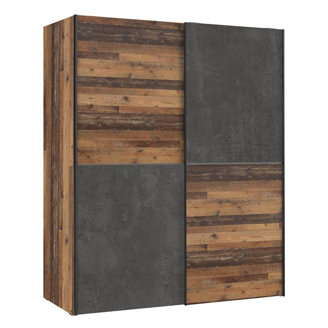 Συρόμενη ντουλάπα με δύο πόρτες, σε palet καφέ και γκρι cement απόχρωση. Κατασκευασμένη από μελαμίνη υψηλής ποιότητας. Διαθέτει δύο συρόμενες πόρτες με φρένα ασφαλείας για μεγαλύτερη εξοικονόμηση χώρου. Στο εσωτερικό της ντουλάπας, υπάρχουν 2 χώροι αποθήκευσης με 2 μεταλλικά δοκάρια ειδικά κατασκευασμένα για κρέμαση ρούχων. Συνδυάζει την ποιότητα κατασκευής με την εργονομία και την πρακτικότητα που χρειάζεται κάθε σπίτι. Είναι σχεδιασμένη με μια ιδιαίτερη φινέτσα ώστε να μπορεί να τοποθετηθεί σε κάθε χώρο του σπιτιού σας. Διαστάσεις: 170,3x61,2x191Υ εκ. Ευρωπαϊκής κατασκευής Παρατηρήσεις: Το προϊόν παραδίδεται αμοντάριστο, σε εργοστασιακή συσκευασία με αναλυτικές οδηγίες συναρμολόγησης. Συνιστάται η συναρμολόγηση της ντουλάπας, να πραγματοποιηθεί από εξειδικευμένο τεχνικό συνεργείο.