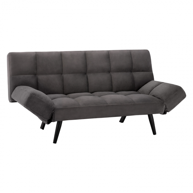 Καναπές τριθέσιος, επενδεδυμένος με βελούδινο ύφασμα σε γκρι απόχρωση 182Χ80Χ88Υ εκ. Πτυσσόμενος καναπές-κρεβάτι κατάλληλος για το καθιστικό ή το δωμάτιό σας,η πλάτη του, έχει την δυνατότητα να πέφτει πίσω και να μετατρέπεται εύκολα σε ένα άνετο κρεβάτι ή να παραμένει σε ανάκλιση, ενώ τα μπράτσα του είναι αναδιπλούμενα. Αν αναζητάτε στα έπιπλά σας την άνεση και την λειτουργικότητα, το συγκεκριμένο προϊόν θα σας εξασφαλίσει και τα δύο. Ο πολυχρηστικός αυτός καναπές είναι ιδανικός για απρόσμενους επισκέπτες σε περίπτωση διανυκτεύρευσης, παρέχοντας παράλληλα άνετο χώρο καθίσματος. Διαθέτει ενισχυμένα μεταλλικά πόδια, σε μαύρη απόχρωση και είναι ιδιαίτερα σταθερός και ανθεκτικός. Αποτελεί ιδανική επιλογή για εσάς που αναζητάτε κάτι κομψό, λειτουργικό και ποιοτικό. Διαστάσεις: 182x80x88 εκ. Ύψος καθίσματος: 40 εκ. Διαστάσεις καθίσματος: 122-182x50 εκ. Ύψος μπράτσου: 50-59 εκ. Διαστάσεις μπράτσου: 53x30 εκ. Απόσταση ποδιών: 117x67 εκ. Ύψος ποδιών: 23,5 εκ. Κρεβάτι: 182x110x40 εκ. Διαστάσεις πλάτης: 182x55 εκ.
