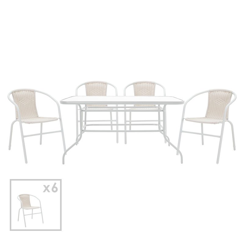 Τραπεζαρία κήπου Valor-Obbi σετ 7τεμ pakoworld μέταλλο-pe λευκό