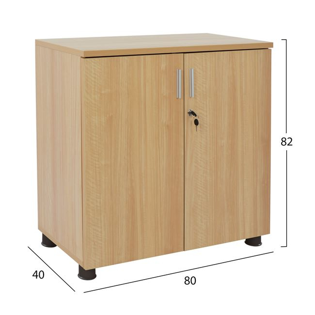 Ντουλάπι γραφείου επαγγελματικό σε χρώμα οξιάς με δύο πόρτες και κλειδαριά. Αποθήκευσε τα βιβλία, τα περιοδικά, τα κλασέρ, τα cd και τα dvd σου στο εσωτερικό του. Ευρύχωρο και χαμηλό, ταιριάζει σε οποιοδήποτε περιβάλλον γραφείου. Διαθέτει κλειδαριά, 2 πόρτες και ένα ράφι στο εσωτερικό του. Διαστάσεις: 80x40x82 εκ.